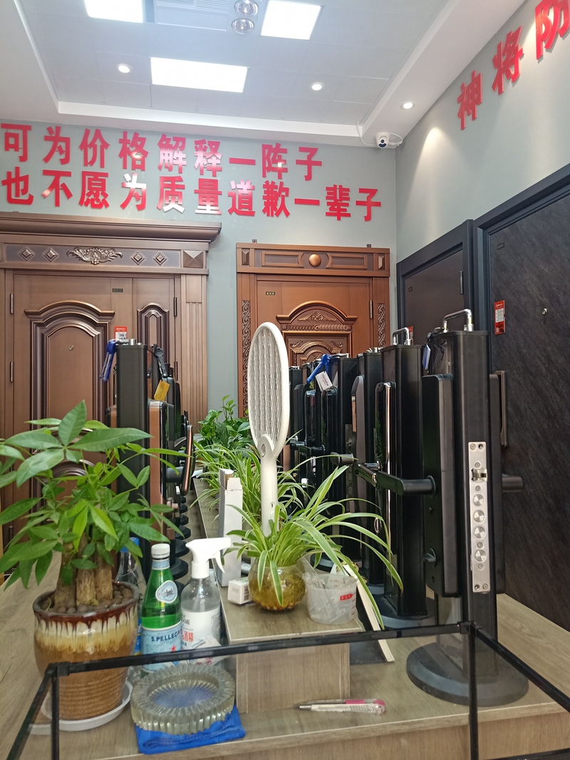 经营范围 神将安全门 指纹锁 静音木门 全屋整装 集成吊顶 墙纸墙布 可视猫眼 无线门铃 保险柜等